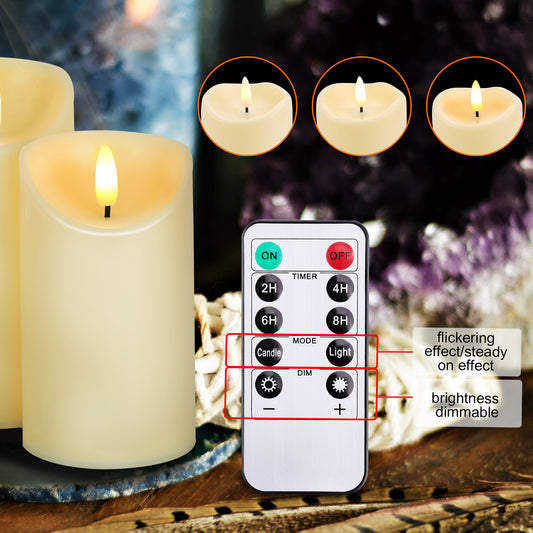 Flameless Candles, IMAGE Flickering Flameless Candles Set of 3, Realistic and Black Wick LED Candles with Remote and Timer, Battery Operated Candles for Home, Wedding, Birthday Decoration