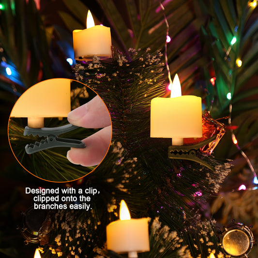 Tealight Candles, IMAGE LED Tealight Flicker Candles with clips for Christmas tree decoration Timer function Flickering , Battery Operated Flameless Tealight Candles, Pack of 12 warm white