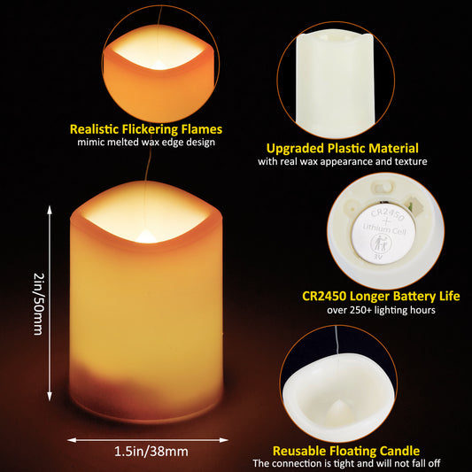 IMAGE Floating Candles with Remote Timer, 12 Pack 1.5×2 Inch Tea Lights Battery Operated, 250+ Hours Long-Lasting Hanging Candles for Wedding Home Decor Birthday Gifts, Warm White