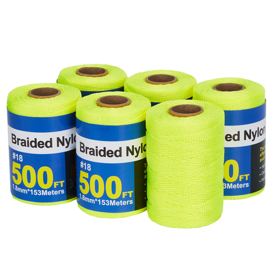 6 Roll Mason Line String Line - #18 Braided Nylon String - 500 Ft Length - Nylon with Reloadable Line Reel Twine for Gardening Or Masonry Tools - Perfect Construction String (Yellow)