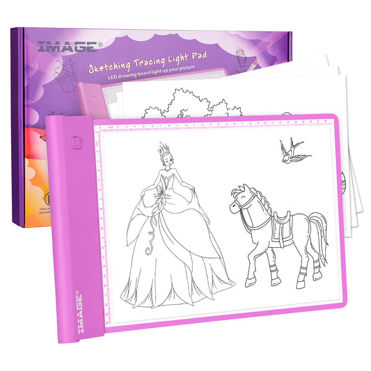 IMAGE Light Up Tracing Pad Pink Drawing Tablet Coloring Board for Kids Children to for Girls Boy (includes 10 Traceable Sheets and Two Clips)