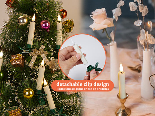 12Pcs LED Taper Candles Light Set Flameless 3D Wick Ivory Candles with Clip-on Christmas Tree Design, 10-Key Remote with Timer, Warm White Light, Battery Operated for Versatile Decoration