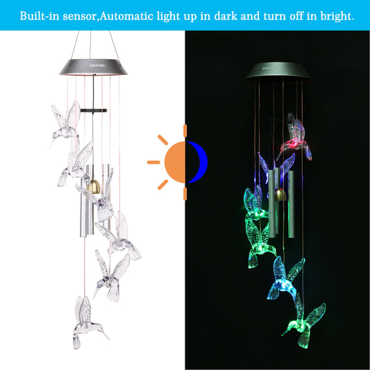 Hummingbird Wind Chime - Color Changing Solar Hanging Lights Xmas Gifts for Decor Home Garden Patio Yard Indoor Outdoor