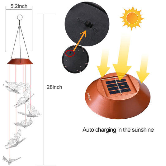 IMAGE Solar Butterfly Wind Chimes Color Changing Butterfly Wind Chimes Mobile LED Wind Chimes Gift for Home Garden Patio Yard Lawn Decor (Butterfly)